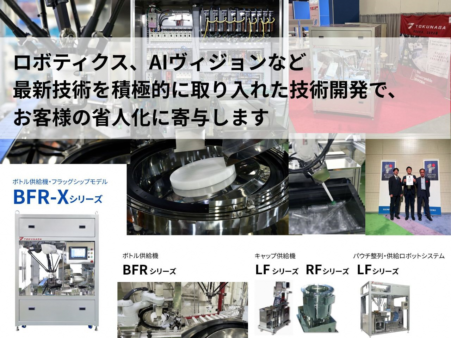 主な製品: 送風機羽根車、航空灯火用間座・基台、ボトル整列機、キャップ整列機、各種ロボットシステム